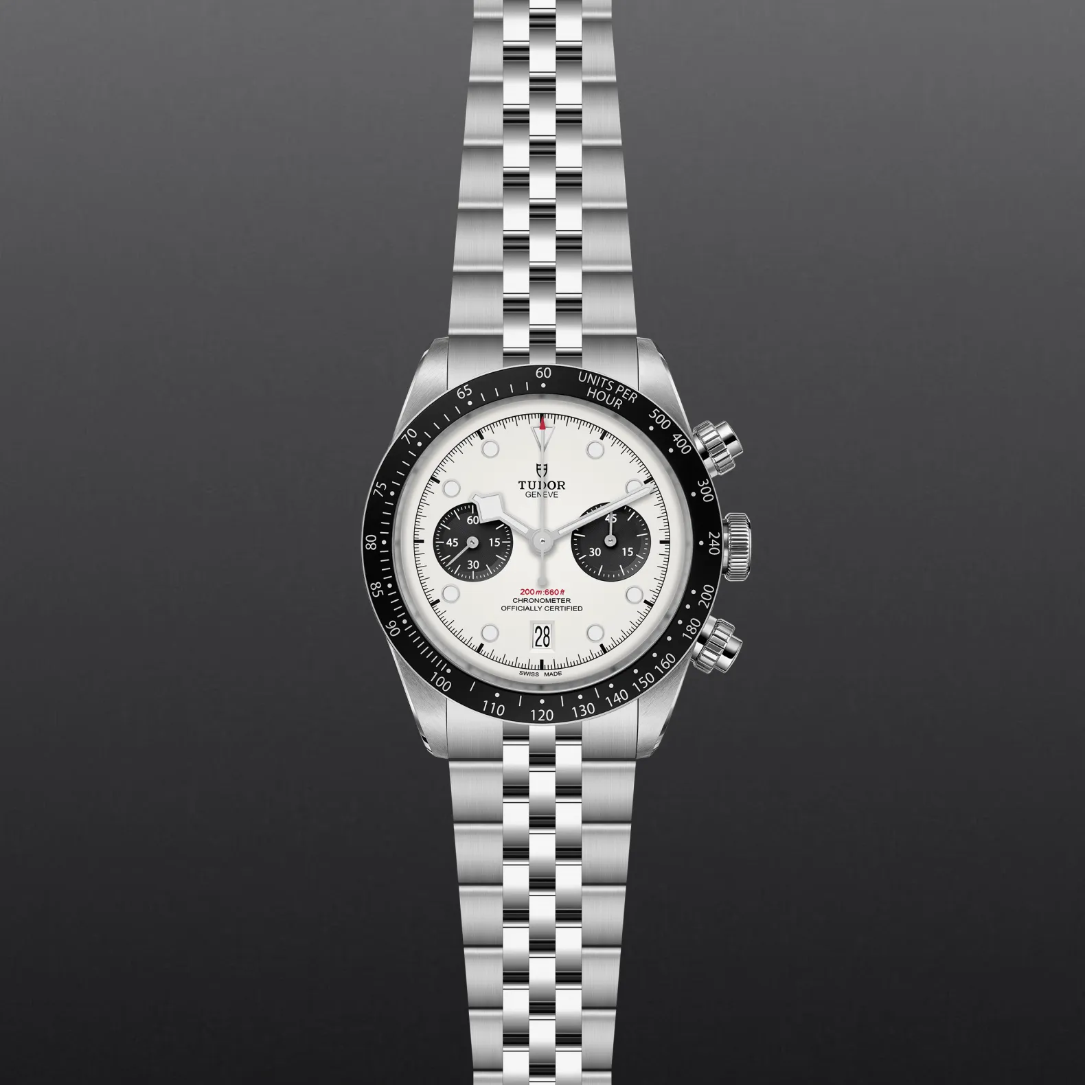 Stainless steel screw-down winding crown with the TUDOR rose in relief Stainless steel screw-down pushers at 2 o’clock and 4 o’clock