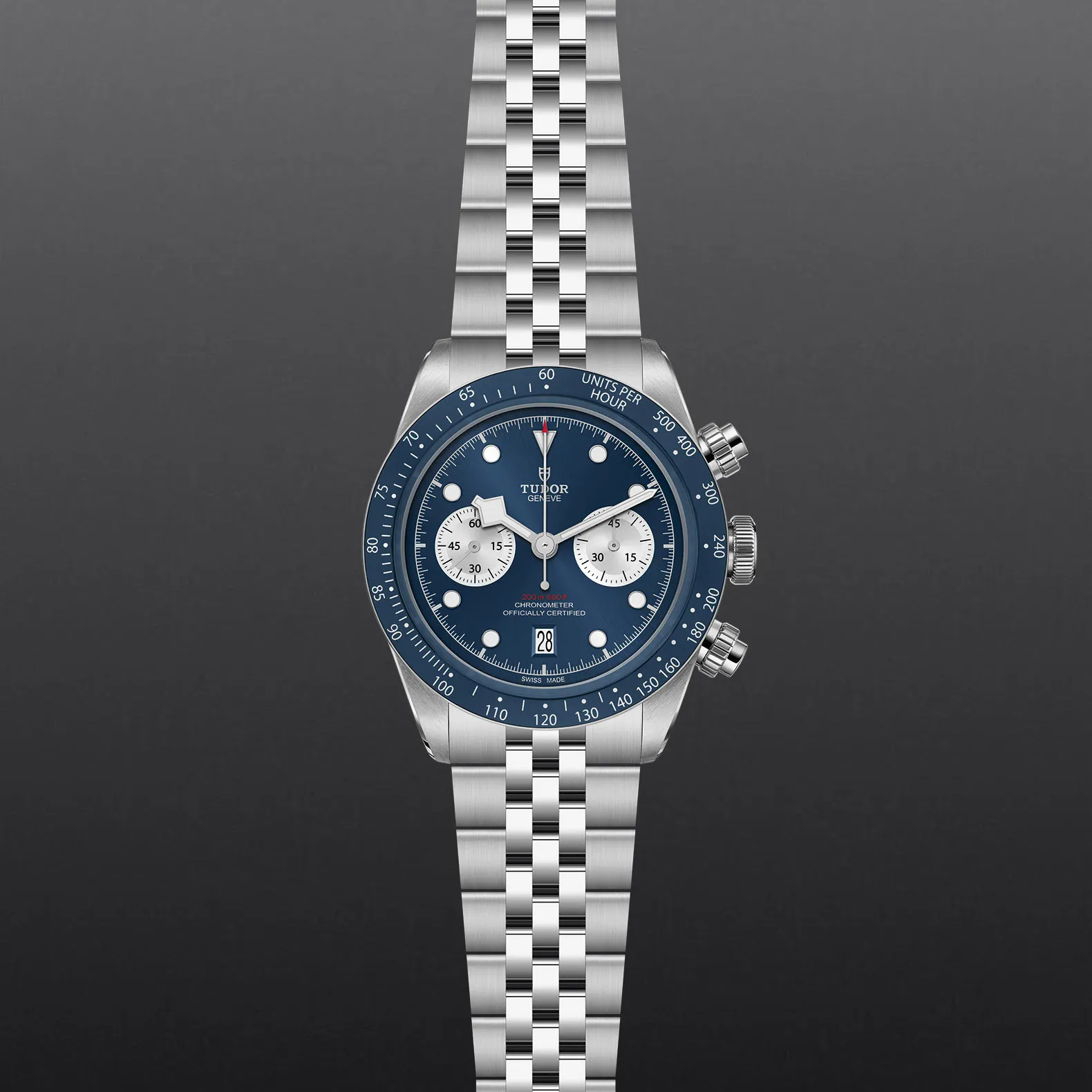 帝舵表曾推出碧湾计时型精钢款腕表以纪念首款帝舵计时腕表问世五十周年。表壳经重新演绎,并提供两种表盘设计,配备对比鲜明的副计时盘,彰显运动型计时腕表的纯粹传统。如今,该表款可搭配三链节或五链节表带,且均配备帝舵表“T-fit”带扣。