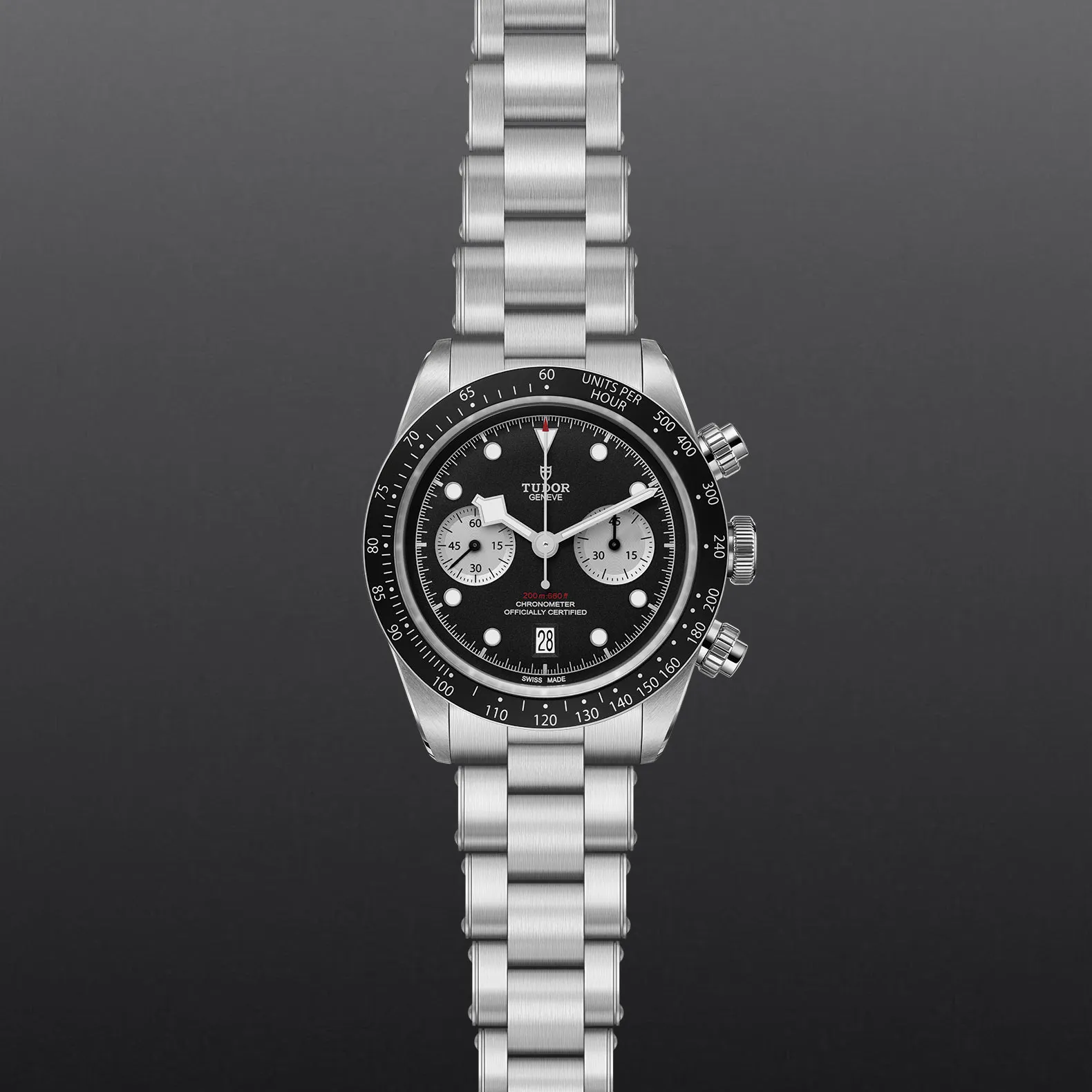 帝舵表曾推出碧湾计时型精钢款腕表以纪念首款帝舵计时腕表问世五十周年。表壳经重新演绎,并提供两种表盘设计,配备对比鲜明的副计时盘,彰显运动型计时腕表的纯粹传统。如今,该表款可搭配三链节或五链节表带,且均配备帝舵表“T-fit”带扣。